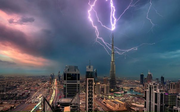 Удар молнии в Бурдж-Халифа (Дубаи, ОАЭ)
