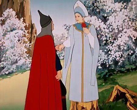 Сучок-путевичок привёл молодого человека к избушке Бабы-Яги. Старуха, выслушав его, решила выдать ему тайну как одолеть Кащея. Она предоставила для него летающего коня, который пронёс его через целый мир и доставил к дубу, на котором подвешена погибель злодея.