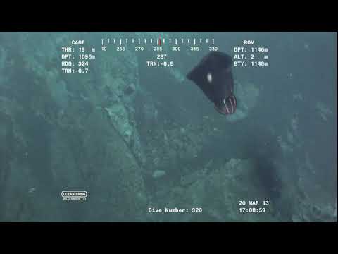 This video was taken by an ROV (remotely operated vehicle) at a depth of 3753 ft in the Indian Ocean within close proximity to a drill wellhead.This video was taken off the East coast of Africa.This video was taken by CaptanJRD